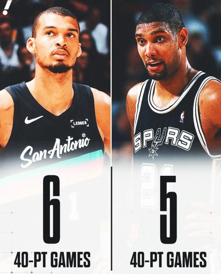 03月 05 2026 0 28圈-出战场次相差1236场!文班砍生涯第6次40+ 而邓肯只有5次 xiaoqiao 2026-03-05 德甲 38 2月11日讯 NBA常规赛,马刺大比分领先湖人。目前,文班亚马已经得到了40分,这是他马刺生涯第6次40+,超越邓肯的5次。这是文班亚马生涯第156场比赛,而邓肯生涯合计出战了1392场比赛,相差1236场。